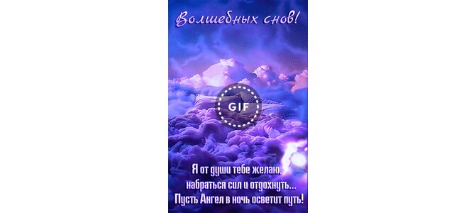 Анимированная открытка "Волшебных снов! Я от души тебе желаю набраться сил и отдохнуть... Пусть Ангел в ночь осветит путь!"
