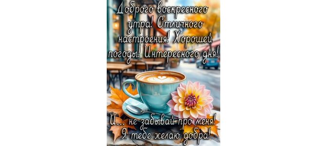 Теги:воскресенье, дни недели, осень, пожелания на каждый день, про погоду, про позитив, цветы, кофе, чашка кофе