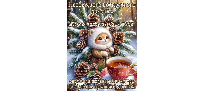 Необычного воскресного денечка! Желаю, чтобы сегодня тебя окружали только добрые люди и радовали приятные события.