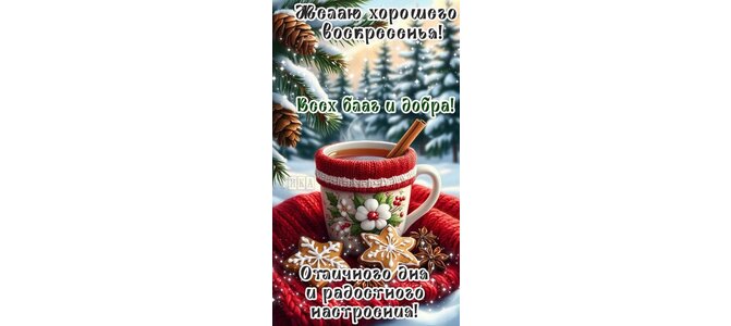 Теги:воскресенье, выходной, дни недели, добрый день, день, снег, лес, зима, елка, печенье, кофе, чашка кофе, позитива и добра
