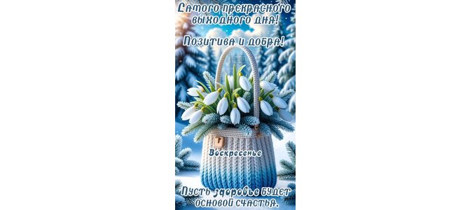 Теги:воскресенье, дни недели, подснежники, дамская сумочка, ель, лес, снег, зима, красивая картинка, про счастье, про здоровье, позитива и добра, выходной
