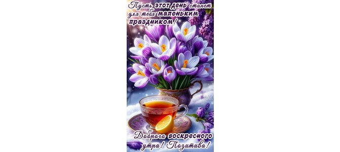 Теги:воскресенье, чай с лимоном, снег, зима, цветы, крокусы, сирень, весна, красивая картинка, дни недели, позитива, добра, праздника