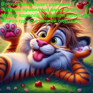 Открытка "Воскресенье будет удачным главное правильно день начать. Можно вдоволь в кровати валяться, можно где-то..."