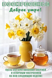 Открытка "ВОСКРЕСЕНЬЕ. ДОБРОЕ УТРО! ПУСТЬ ЭТО УТРО НАПОЛНИТ ЭНЕРГИЕЙ И ОТЛИЧНЫМ НАСТРОЕНИЕМ НА ВСЮ СЛЕДУЮЩУЮ Н"