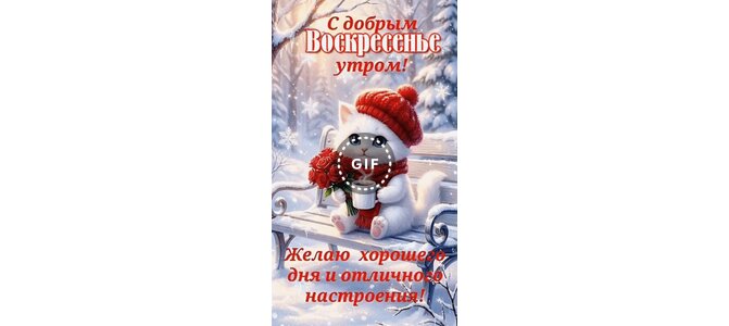 Анимированная открытка "Воскресенье С добрым утром! Желаю хорошего дня и отличного настроения!"