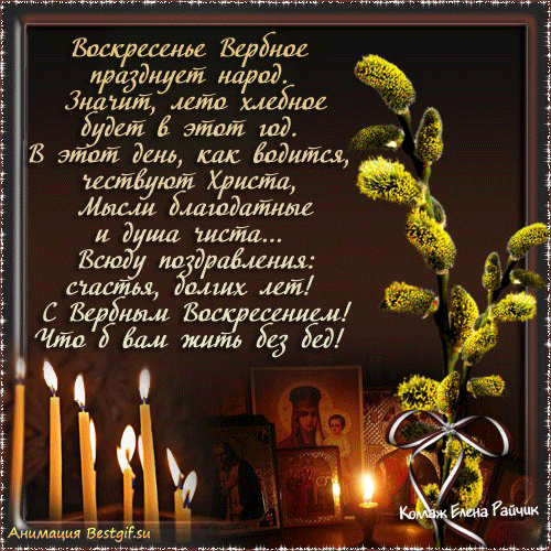 Анимированная открытка "Воскресение Вербное празднует народ! "