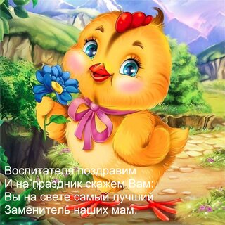 Воспитателя поздравим и на праздник скажем вам: "Вы на свете самый лучший заменитель наших мам."