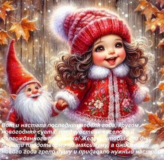 Теги:вот и настала последняя неделя года, кругом новогодняя суета, предчувствие веселого и долгожданного праздника желаю, чтобы эти дни прошли плодотворно по максимуму, ожидание, нового, года, грело, душу, придавало, нужный, настрой