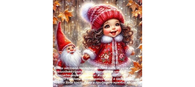 Открытка "Вот и настала последняя неделя года, кругом новогодняя суета, предчувствие веселого и долгожданного"