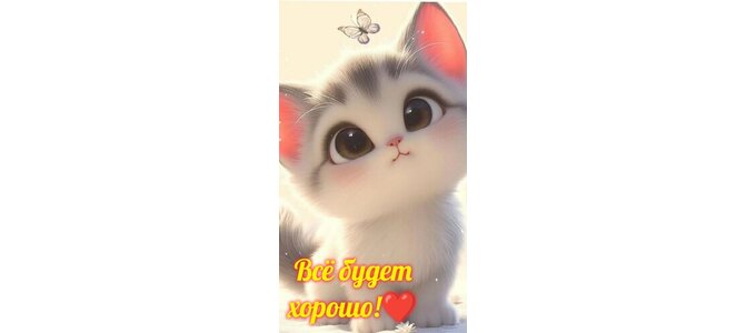 Мордочка красивого котëночка. Подпись внизу изображения "Все будет хорошо!"