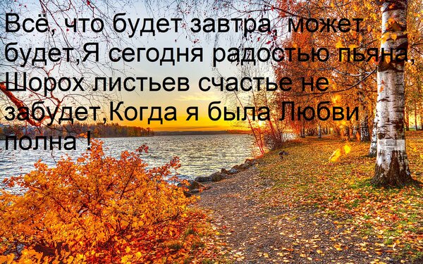 Теги:всё, что будет завтра, может будет, я сегодня радостью пьяна, шорох листьев счастье не забудет, когда я была любви полна