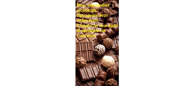 Теги:все, кто любит шоколад, праздник этот отмечают, сладости они едят и калорий не считают