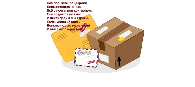 Теги:все посылки, бандероли доставляются на раз, всё у почты под контролем, она трудится для нас и наказ дадим мы строгий почте дорогой своей больше новых технологий и высоких скоростей