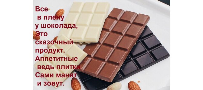 Теги:все в плену у шоколада, это, сказочный, продукт, аппетитные, ведь, плитки, сами, манят, зовут