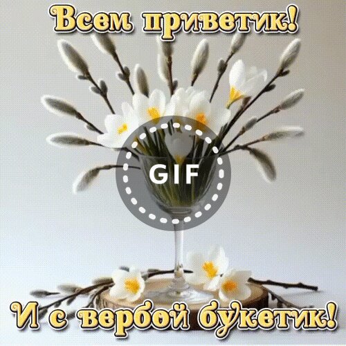 Анимированная открытка "Всем приветик! И с вербой букетик!"