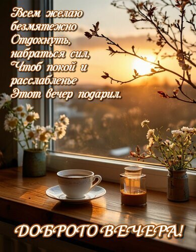 Открытка "Всем желаю безмятежно Отдохнуть, набраться сил, Чтоб покой и расслабленье Этот вечер подарил."