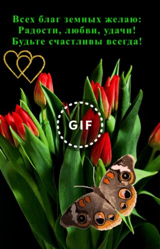 Анимированная открытка "Всех благ земных желаю: радости, любви, удачи! Будьте счастливы всегда!"