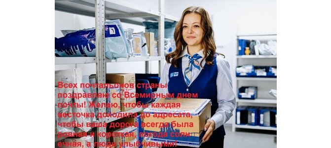 Теги:всех почтальонов страны поздравляю со всемирным днем почты желаю, чтобы каждая весточка доходила до адресата, чтобы ваша дорога всегда была ровная и короткая, погода солнечная, а люди улыбчивыми