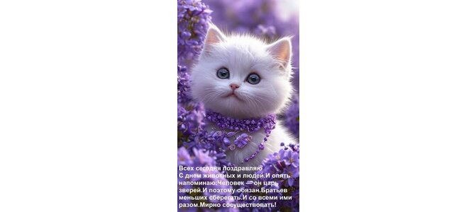 Теги:всех сегодня поздравляю с днем животных и людей и опять напоминаю человек он царь зверей и поэтому обязан братьев меньших сберегать и со всеми ими разом мирно сосуществовать