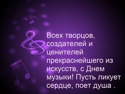 Открытка "Всех творцов, создателей и ценителей прекраснейшего из искусств, с днем музыки! Пусть ликует сердце."