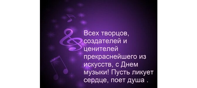 Открытка "Всех творцов, создателей и ценителей прекраснейшего из искусств, с днем музыки! Пусть ликует сердце."