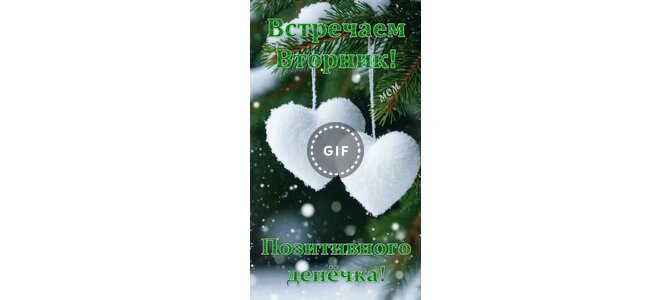 Анимированная открытка "Встречаем вторник! Позитивного денёчка!"
