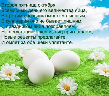 Открытка "Вторая пятница октября Всемирный день его величества яйца, Встретим праздник омлетом пышным, В кулин"