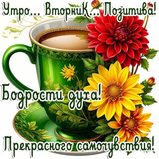 Теги:вторник, утро, чашка кофе, кофе, цветы, дни недели, осень, пожелания, про самочувствие