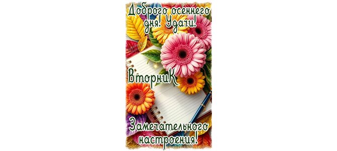 Теги:вторник, день, цветы, осень, про настроение, блокнот, удачного дня