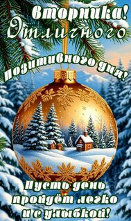 Теги:вторник, дни недели, позитива, лес, снег, зима, ель, новогодняя игрушка, красивая картинка, отличного дня
