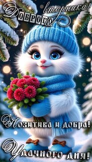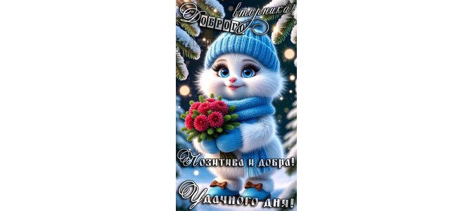 Теги:вторник, дни недели, добрый день, пушистик, зима, снег, позитив, добра, удачного дня, красивая картинка, доброго вторника, цветы