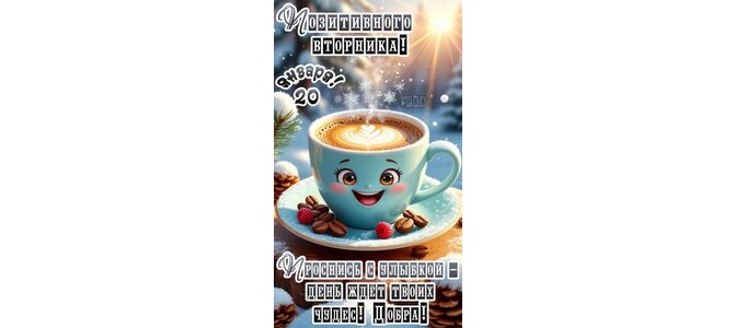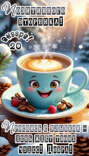 Теги:вторник, дни недели, чашка кофе, смайлик, позитив, юмор, чудес, добра, позитивного дня, добрый день, красивая картинка, про улыбку