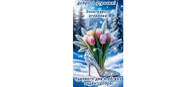 Теги:вторник, дни недели, цветы, тюльпаны, туфелька, зима, снег, лес, красивая картинка, легких задач, удачного дня, позитива, добра