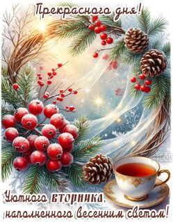 Теги:вторник, дни недели, чай, ягоды, снег, весна, зима, добрый день, весеннего света, уюта и добра