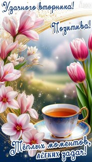 Теги:вторник, дни недели, цветы, чай, весна, красивая картинка, тюльпаны, теплах моментов, легких задач, позитива, добра, добрый день, удачи