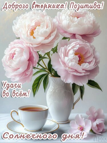 Теги:вторник, дни недели, добрый день, удачи, солнечного дня, цветы, пионы, красивая картинка, чай