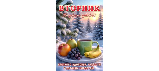 Открытка "ВТОРНИК. БОДРОГО УТРА! КРЕПКОГО ЗДОРОВЬЯ, РАДОСТИ И ХОРОШИХ НОВОСТЕЙ!"