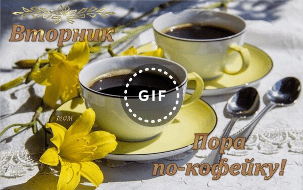 Анимированная открытка "Вторник. Пора по-кофейку!"