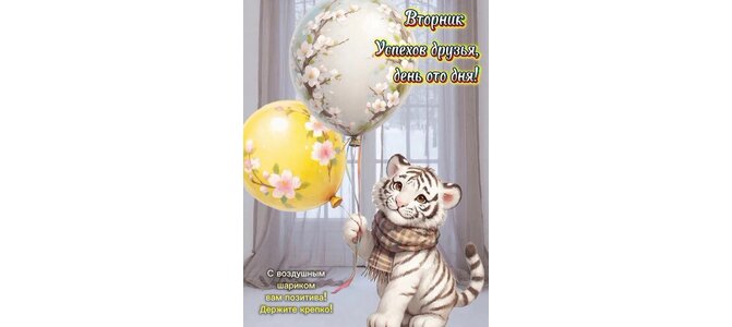 Открытка "Вторник. Успехоа друзья, день ото дня!"