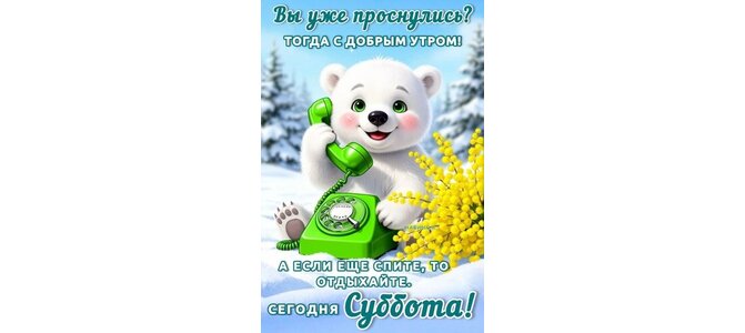 Открытка "ВЫ УЖЕ ПРОСНУЛИСЬ? ТОГДА С ДОБРЫМ УТРОМ! А ЕСЛИ ЕЩЕ СПИТЕ, ТО ОТДЫХАЙТЕ. СЕГОДНЯ СУББОТА!"