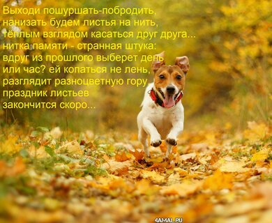 Открытка "Выходи пошуршать-побродить, нанизать будем листья на нить, тёплым взглядом касаться друг друга... "