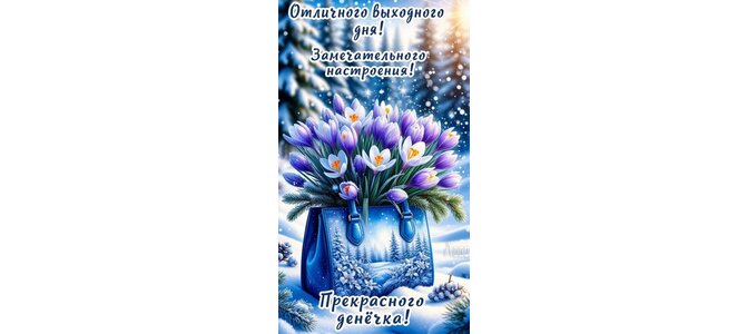 Теги:выходной, цветы, крокусы, зима, снег, лес, дамская сумка, прекрасного дня, замечательного настроения, суббота, воскресенье