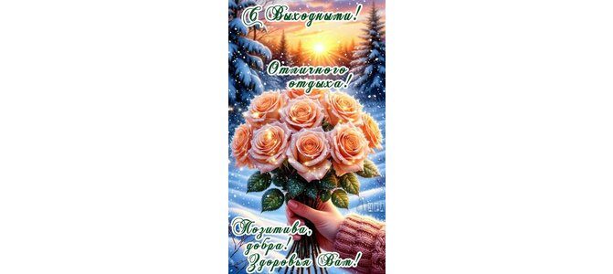 Теги:выходные, пятница, суббота, цветы, розы, женская рука, снег, зима, красивая картинка, дни недели, позитива, добра, здоровья