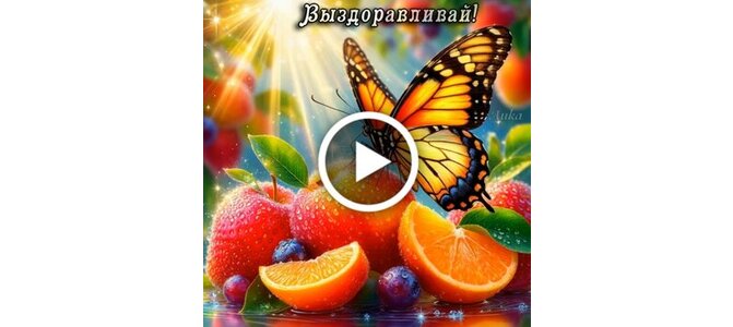 Теги:выздоравливай, апельсины, яблоки, лето, весна, бабочка, цветы, витамины для тебя, ярко, солнечно, пожелания на каждый день, видео пожелание, видео с музыкой