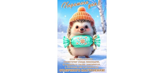 Теги:зима, добрый день, отличное настроение, ежик, конфетка
