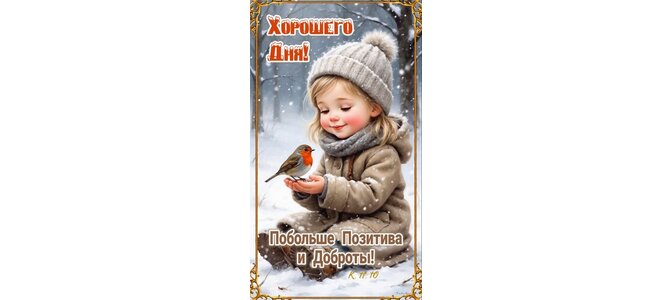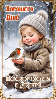Теги:хорошего дня, зимний день, позитив, доброта, пожелания, девочка и птичка, для всех