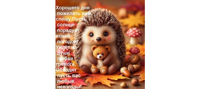 Теги:хорошего дня пожелать вам спешу, пусть солнце порадует ясной погодой уйдёт из души любая тревога, обходят пусть вас любые невзгоды