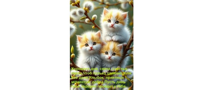 Теги:хорошего дня, света, счастья, тепла, чтоб только отлично шли все дела, улыбок, приятных моментов, добра, пусть день твой задорно пройдет у тебя