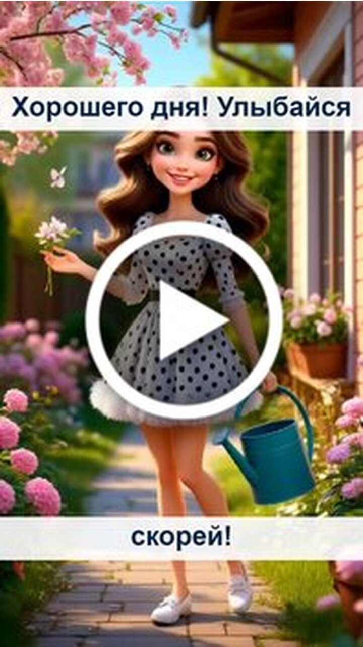 В этом видео представлена яркая и вдохновляющая история одной девушки в стиле современной 3D анимации. Сюжет начинается в цветущем весеннем саду, где героиня в нарядном платье в горошек ухаживает за растениями. Затем ее прогулка превращается в увлекательное путешествие на стильном голубом скутере по живописным улочкам города. В финале девушка наслаждается отдыхом в уютном уличном кафе, попивая напиток под мелодичные звуки гитары уличного музыканта. Видео наполнено атмосферой радости, тепла и романтики весеннего дня.