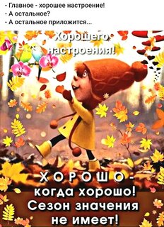 - Главное - хорошее настроение! - А остальное? - А остальное приложится... Хорошего. настроения! Хорошо- когда хорошо! Сезон значения не имеет!